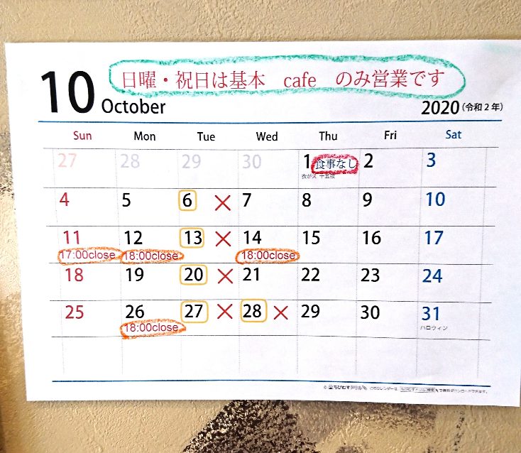今月は火曜日以外に28日(水)がお休みとなってます。